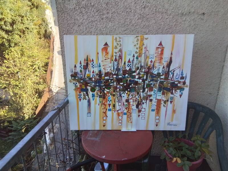 Abstrakte Stadt. Öl Leinwand 110x80.