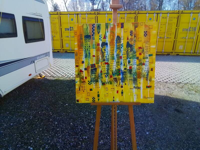 Skyline. Ölbild auf Leinwand 100 x 100.